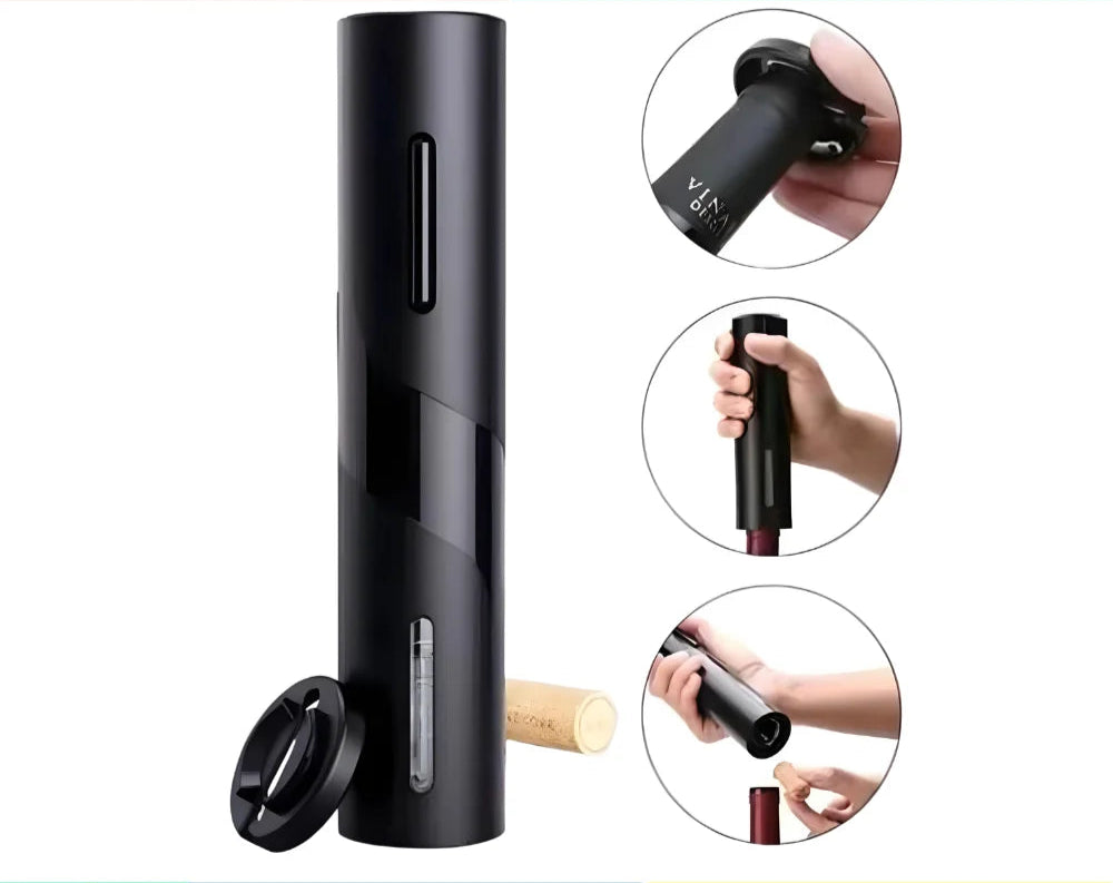 Abridor Automático: Insere e retira a rolha em segundos com um toque (funciona com 4 pilhas AA*).